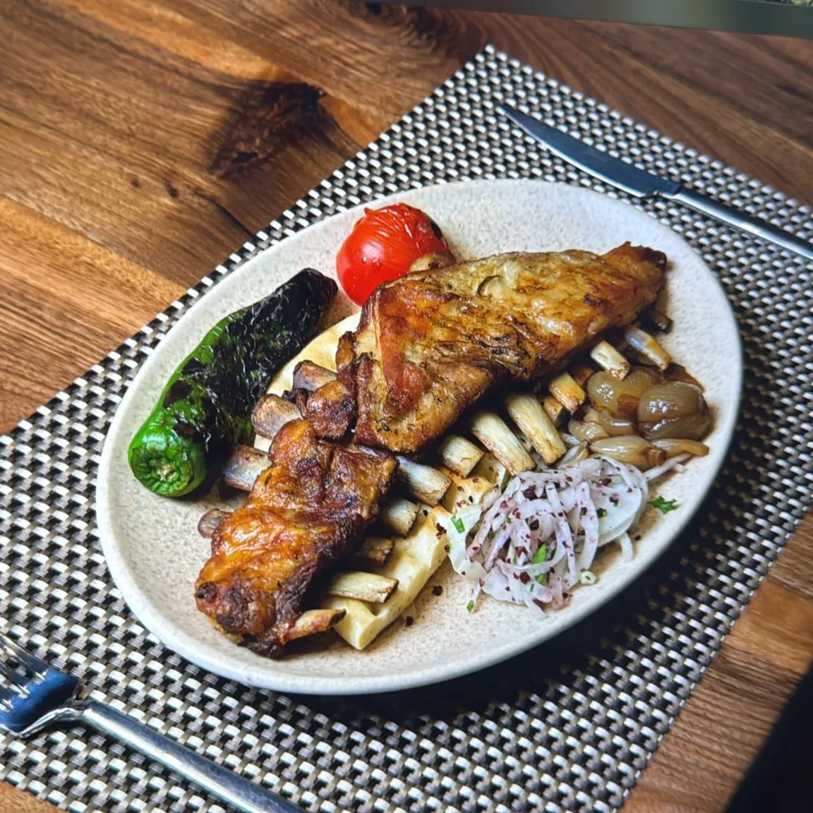 En taze ve en kaliteli kuzu kaburgalarını seçerek işe başlıyoruz. Ardından, şeflerimizin özel reçetesiyle hazırlanan baharatlarla marine ediyoruz. Uzun saatler süren özel pişirme tekniğimiz sayesinde, etimiz kemiklerinden kolayca ayrılan, içi sulu ve dışı çıtır bir lezzete ulaşıyor. Yanında közlenmiş domates, biber ve soğan ile servis edilen bu eşsiz lezzet, damaklarınızda unutulmaz bir tat bırakacak.
